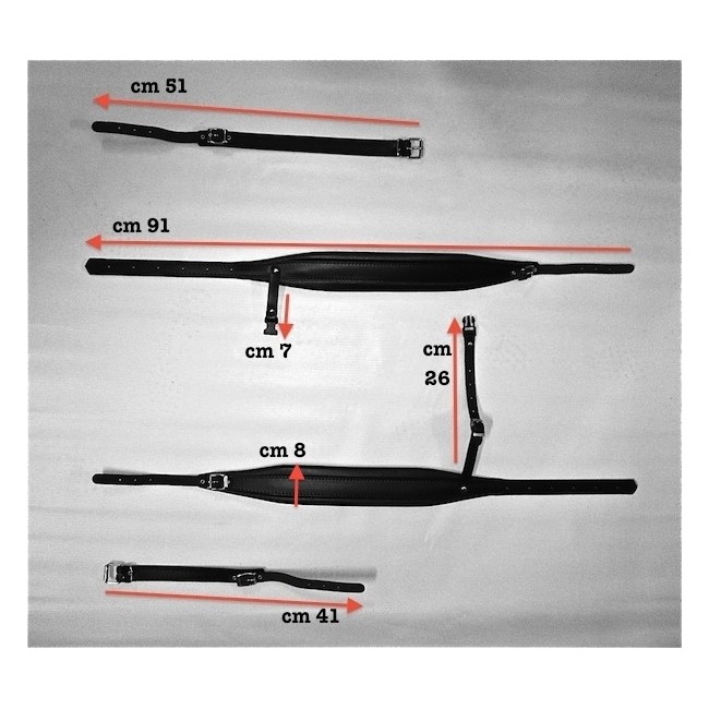Straps for accordion in Real leather and Artificial Leather, mod. 8/EL (width 7 cm / lenght adjust.) + Back straps, col. BLACK