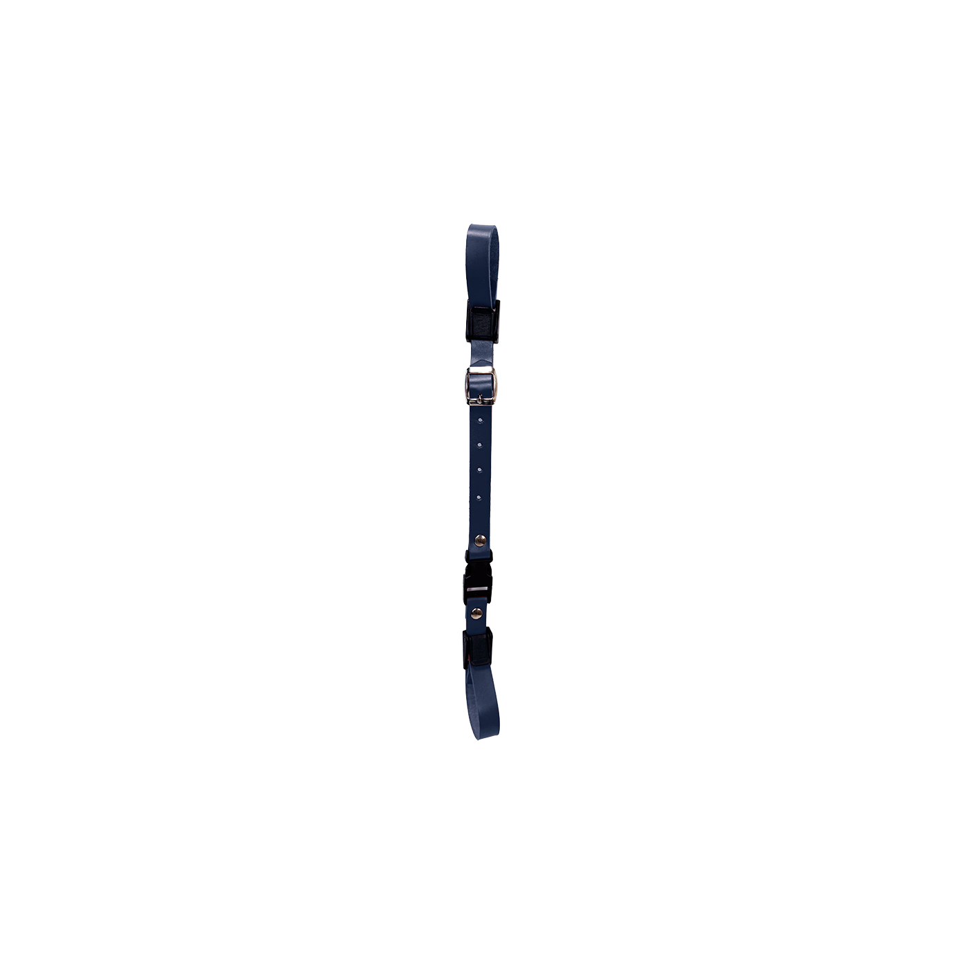 (CHIUSURA PER TRACOLLE) STRAPPINI IN CUOIO BLU PER FISSARE TRA DI LORO LE TRACOLLE DELLA FISARMONICA DIETRO LA SCHIENA, CON CHIUSURA VELOCE.