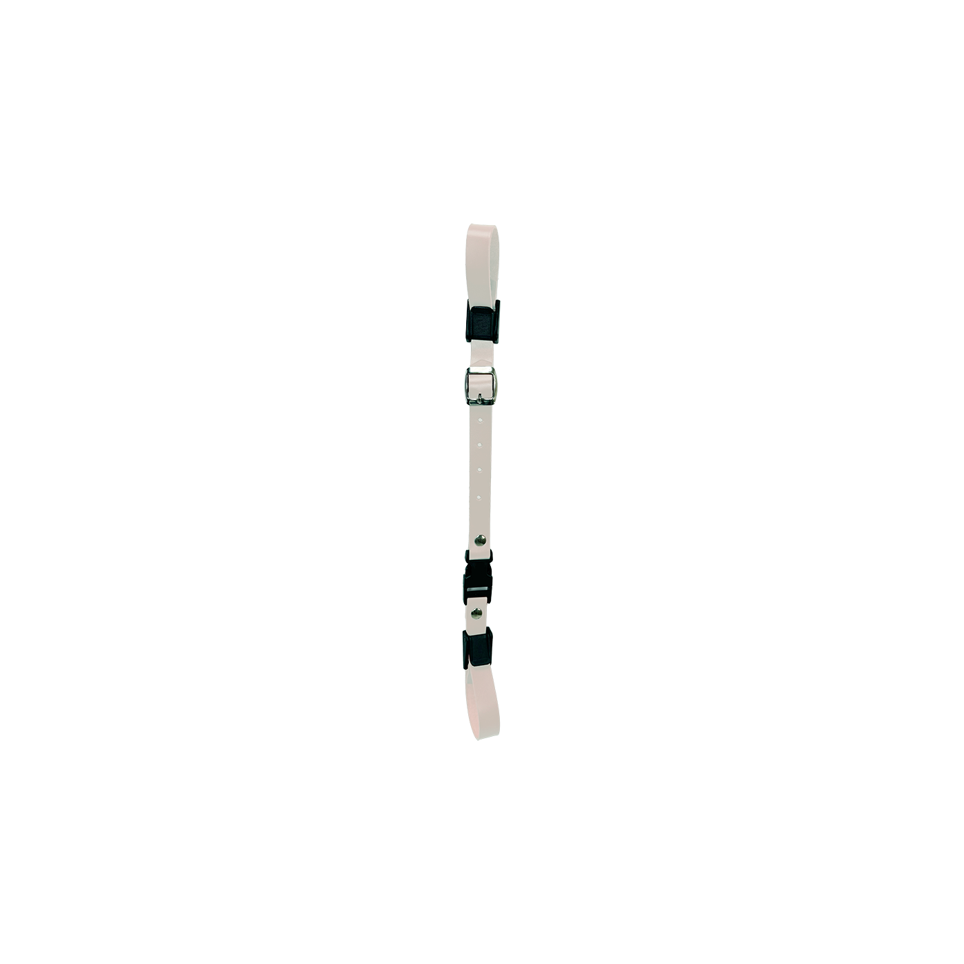 (CHIUSURA PER TRACOLLE) STRAPPINI IN CUOIO BIANCO PER FISSARE TRA DI LORO LE TRACOLLE DELLA FISARMONICA DIETRO LA SCHIENA, CON CHIUSURA VELOCE.