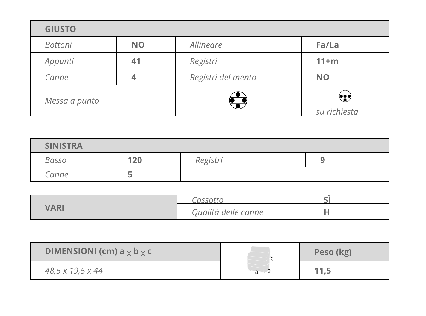 | Cassotto | With 2 voices in Tone Chamber (Cassotto) |