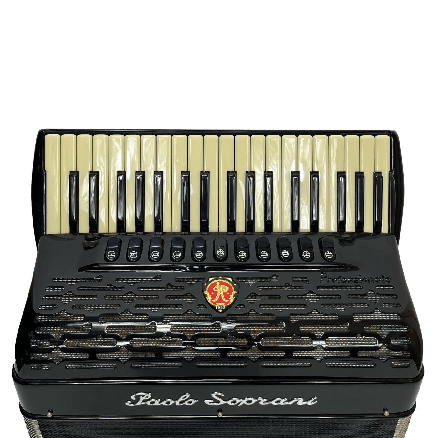 Paolo Soprani mod. Professionale 37/96/4°- 4° LMMM, col. BLACK and ivory - Nero con tasti e bassi avorio