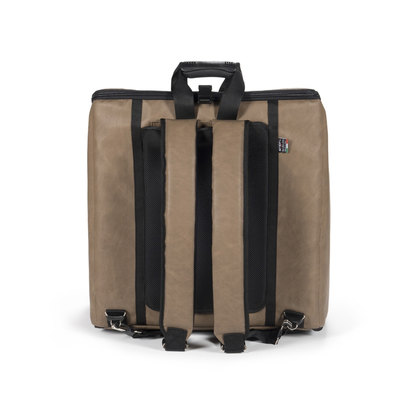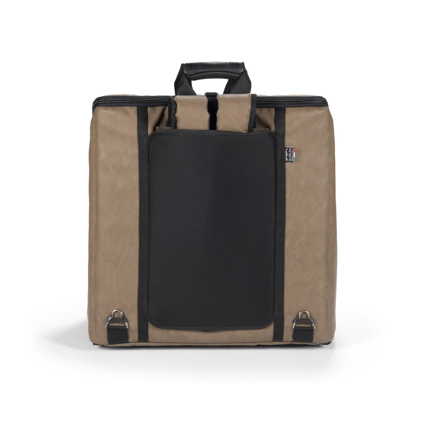 Padded Bag/Shoulder-bag + Trolley, mod. 2000ST for accordion made in vegan leather, col. Marrone - Brown