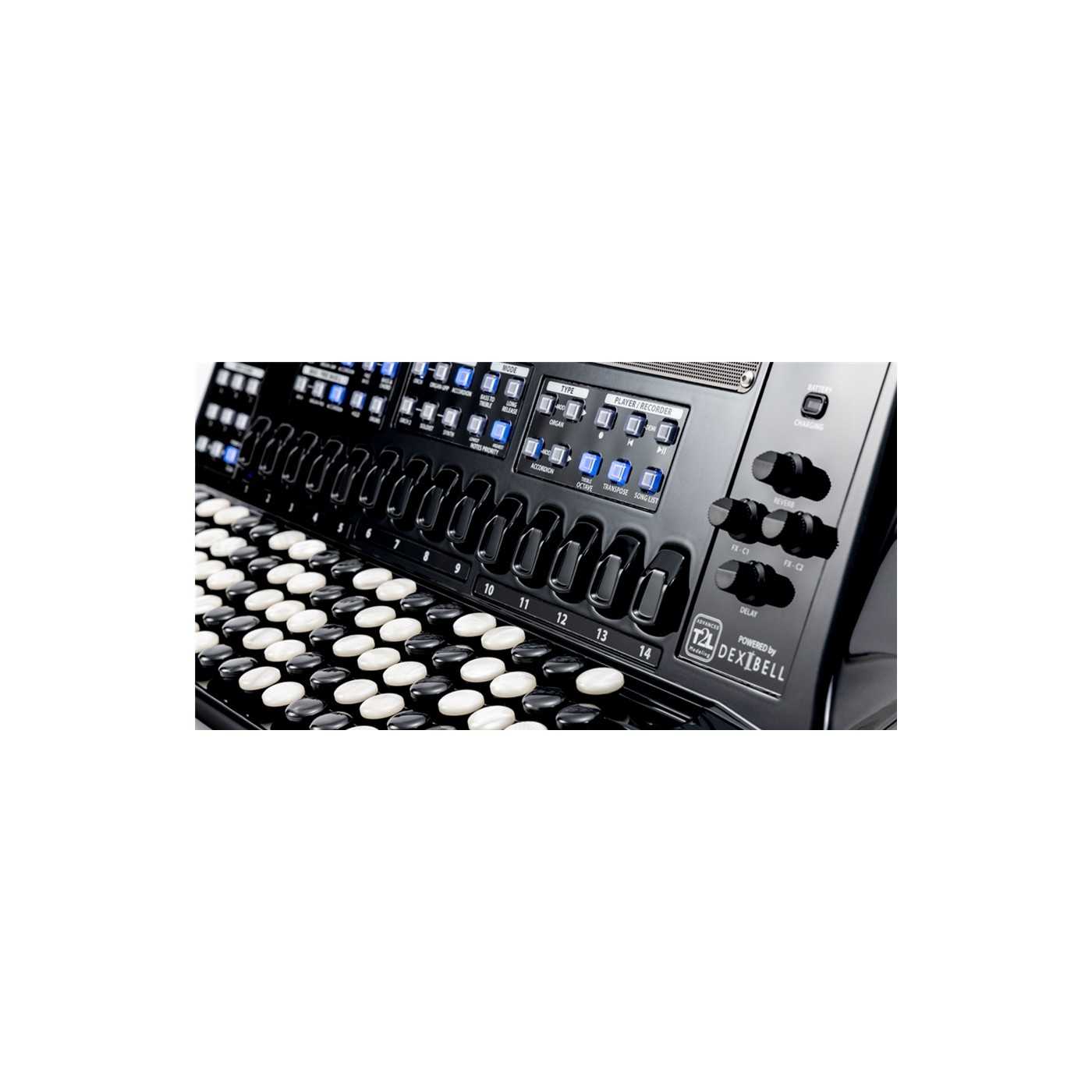 - Bellows Technology: "Advanced Proportional Bellows Behavior" to control resistance through selected registers, number of keys pressed, and pitch. Independent push/pull resistance for balanced motion. Adaptive expression interpolation for smoother transitions and rapid bellows swings. "Seamless release" on orchestral sounds during bellows change or reversal.