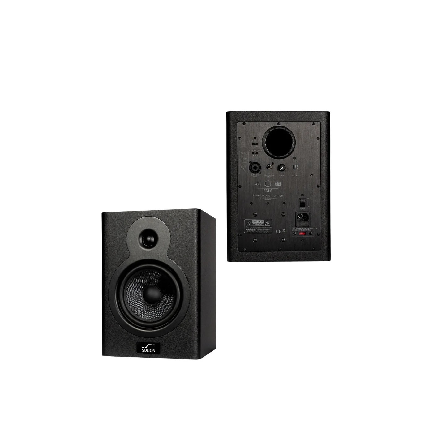 The SOLTON SM6 is a near-field studio monitor designed as a vertically aligned 2-way system.The SM6 features a 6.5” woofer with Kevlar cone, which enables bass reproduction down to 50 Hz, while the tweeter`s cone offers a pure and extended high frequency range of up to 22 kHz.The metal rear panel of the SM6 houses contains the bass reflex port as well as numerous controls and analogue connections. The tweeter is powered by a 25 watt amplifier, while a 60 watt amplifier drives the woofer. This power pack in a slim housing delivers an impressive maximum sound pressure level of 108 dB SPL per pair.The wide frequency response, wide dynamic range, excellent transient response and small size make the SM6 ideal for use in small control rooms for music production, video post-production and broadcast.