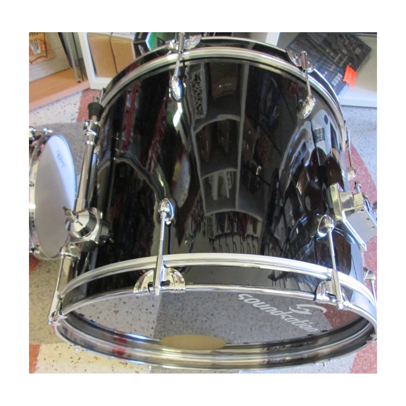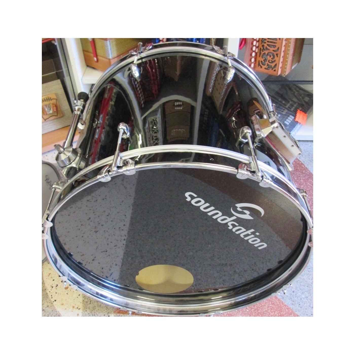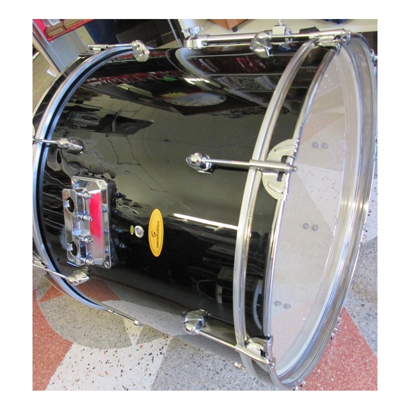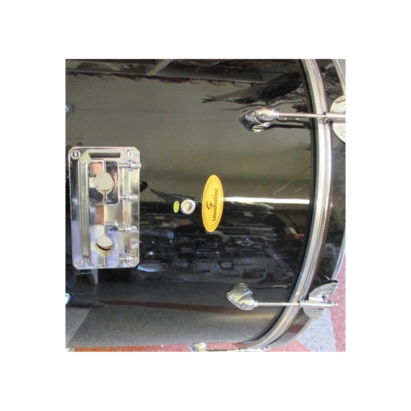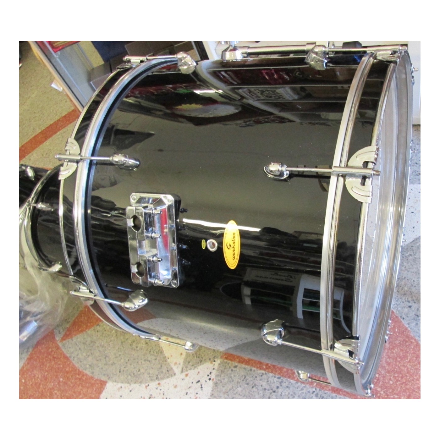 SOUNDSATION GRANCASSA PER BATTERIA 22X15 COMPLETA DI GAMBI E PELLI IN PIOPPO 9 STRATI FINITURA NERO diametro foro 22mm