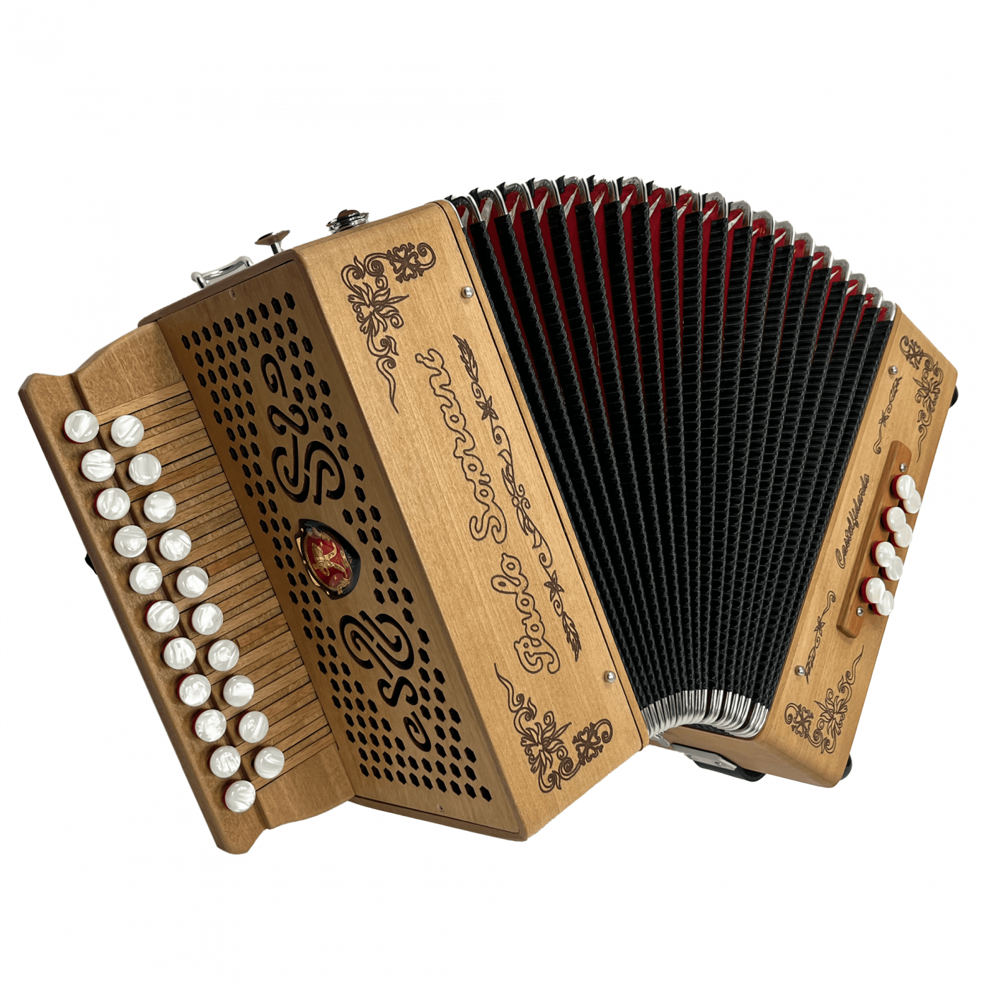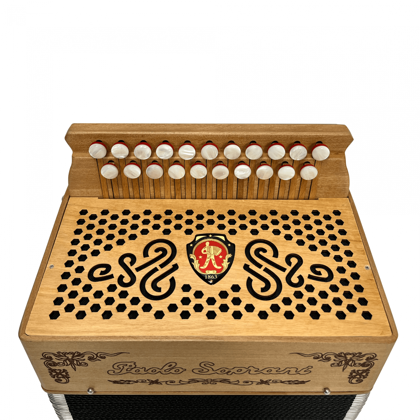 Paolo Soprani mod. Saltarello 8 (21/8 3 voci), Tonalità SOL/DO (G/C), musette, Legno chiaro