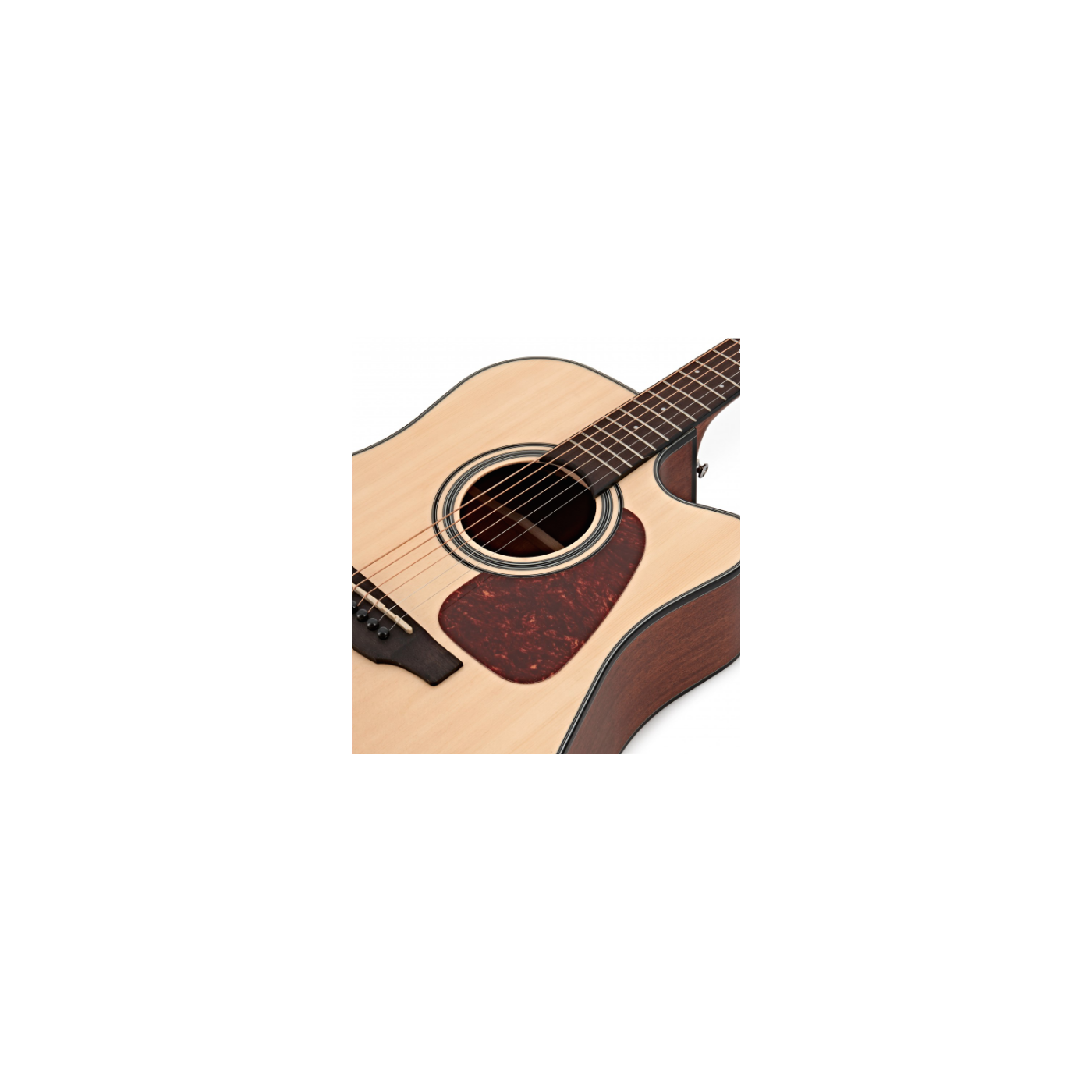 An excellent choice for any player seeking an affordable acoustic/electric guitar that performs well above its price tag, the GD10CE features a select spruce top and mahogany back and sides for a full and balanced sound. The slim satin-finish mahogany neck and 12”-radius ovangkol fingerboard provide great feel and playability, while the onboard Takamine TP-4T preamp system gives you a built-in tuner with volume and tone controls and a mid-cut switch for excellent amplified performance.
