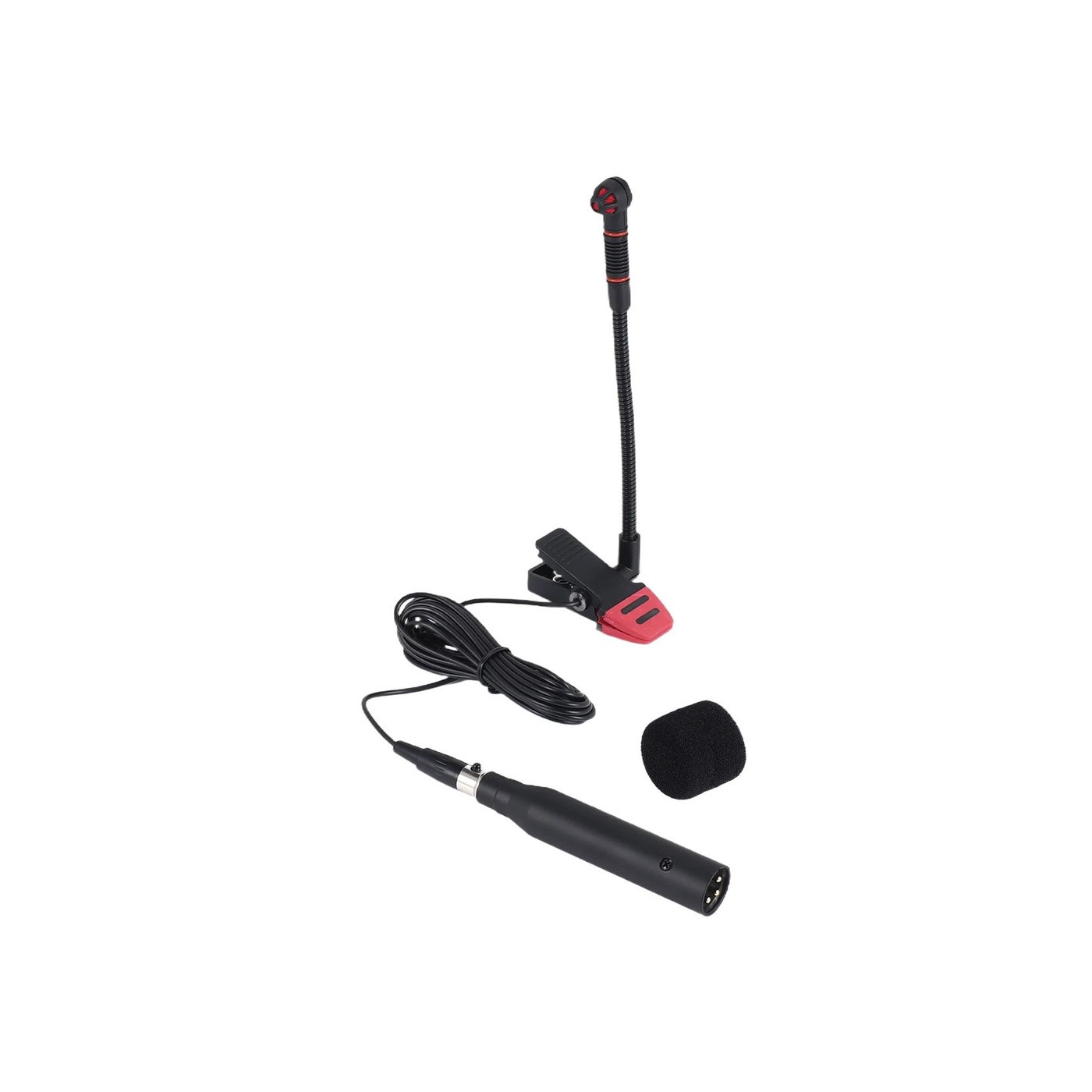 Microfono a condensatore professionale clip‑on per strumenti vari: a corda, fiato, per fisarmoniche, etc.