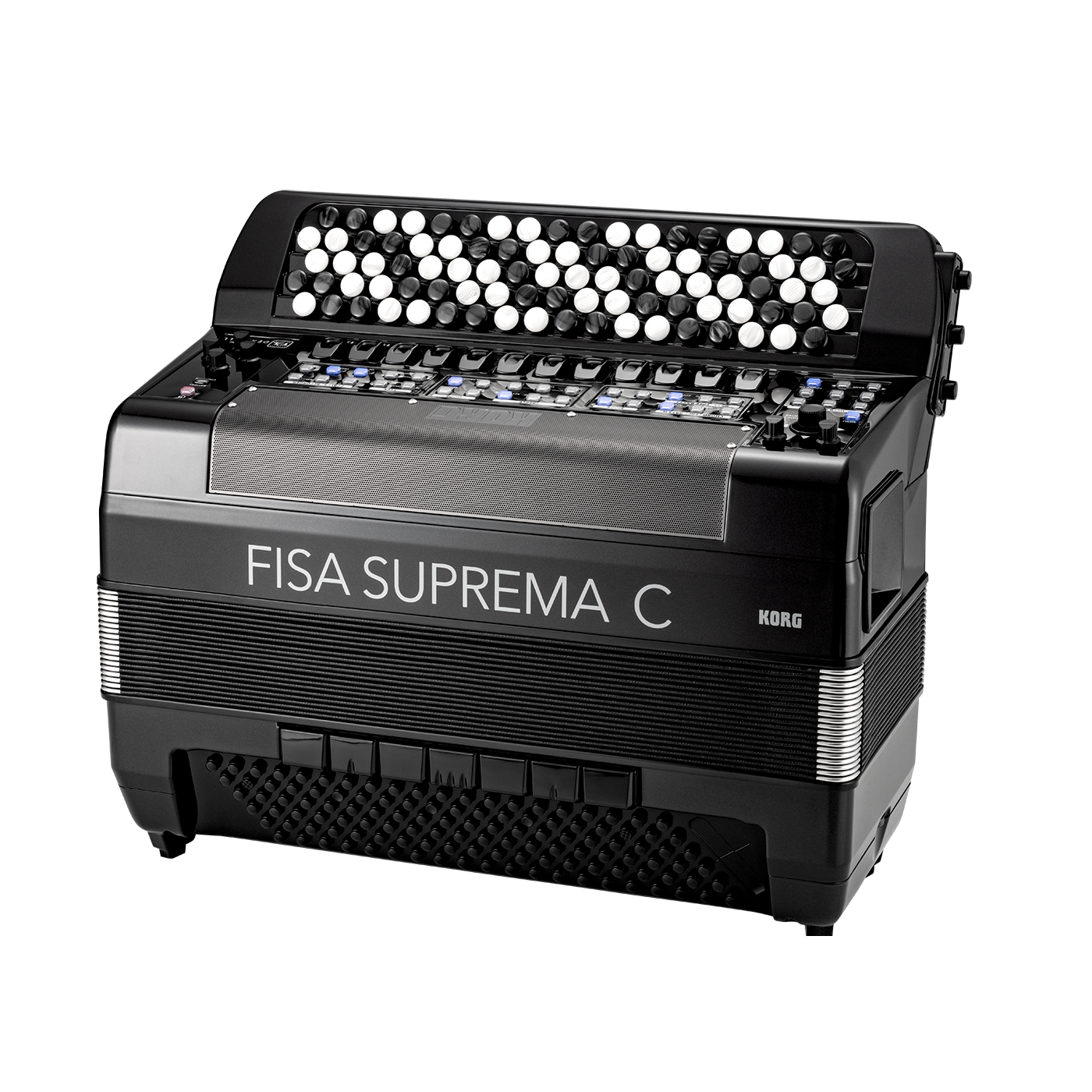 La Korg Fisa Suprema C Button è una fisarmonica digitale compatta che combina la tradizione artigianale con la più avanzata tecnologia. Questo modello offre le stesse prestazioni della serie Suprema, ma in un formato più leggero e maneggevole, restituendo al musicista la sensazione di suonare una vera fisarmonica acustica a 120 bassi. Grazie alla modellazione fisica di 45 diversi tipi di fisarmonica e a un’ampia libreria di timbri orchestrali, synth e percussioni, lo strumento garantisce un’eccezionale versatilità sonora. Il cuore dello strumento è la tecnologia Natural Bellows Response, che riproduce fedelmente la risposta del mantice e permette di esprimere ogni sfumatura dinamica. La potenza di calcolo consente inoltre di sfruttare la libreria Hyper-Real Sound Cluster per arricchire l’accompagnamento con sezioni ritmiche e armoniche realistiche. Completano la dotazione un sistema di amplificazione stereo da 70 W, connessioni MIDI, USB e Bluetooth Audio/MIDI e la possibilità di funzionare sia con adattatore AC che con batteria ricaricabile fino a 8 ore di autonomia. Con il suo design ergonomico e il peso ridotto, Fisa Suprema C Button è ideale per concerti, lezioni, studio e viaggi, offrendo un perfetto equilibrio tra qualità sonora, espressività e praticità d’uso.