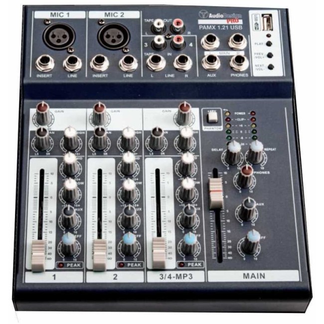 AUDIODESIGN PRO PAMX 1.21 USB MIXER PROFESSIONALE COMPATTO CON INGRESSO USB MIXER PROFESSIONALE 4 CANALI ( 2 MONO + 1 STEREO)