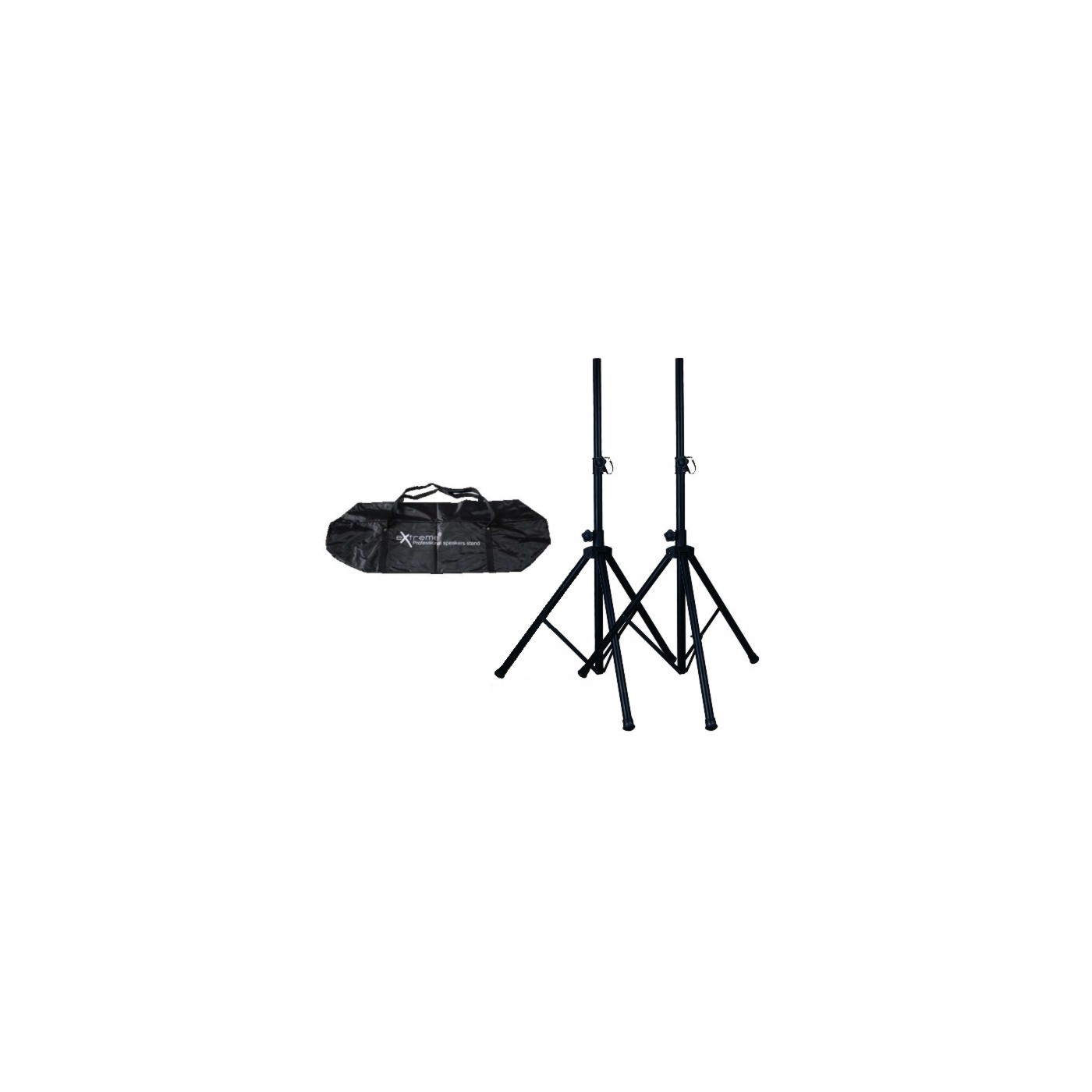 - Set completo con coppia di supporti in alluminio per casse acustiche, dotati di sistema di sicurezza in acciaio a mezzo pin e pratica borsa Extreme per un comodo trasporto.