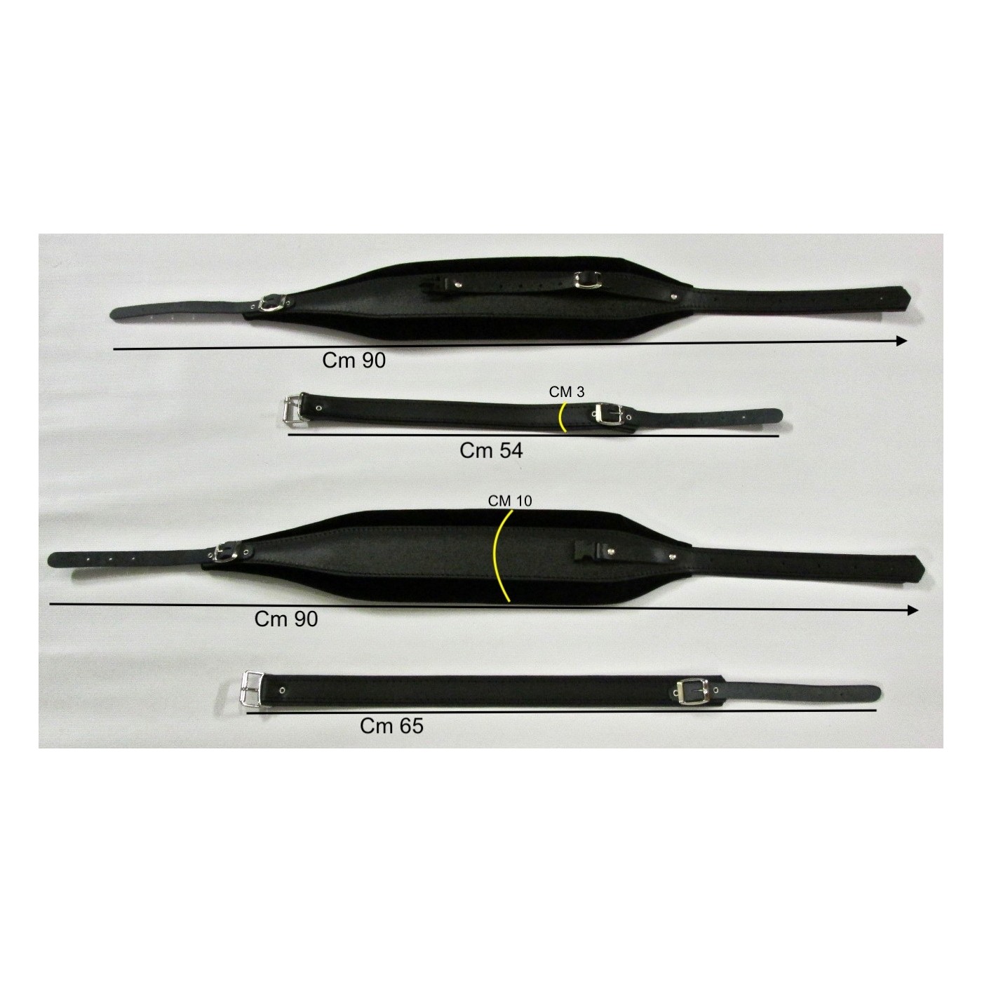 Tracolle per fisarmonica in Vera pelle e Velluto, mod. 10/EL (larg. 10 cm / lung. regolabile) + Cinghia schienale, col. NERO